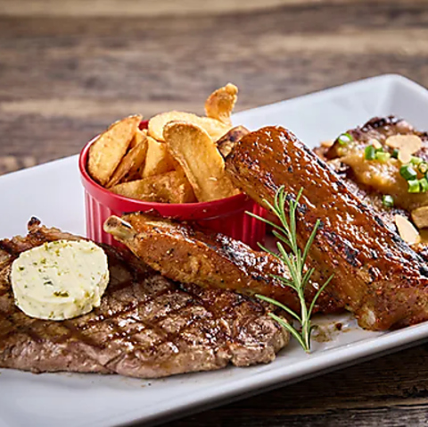 ホテル最上階の夜景が見えるレストランで沖縄料理を満喫しませんか?コンボプレート(サーロイン・スペアリブ・県産ハーブ鶏)や穀物牛リブロースワンポンドステーキなどボリュームたっぷりのお料理が各種ございます!