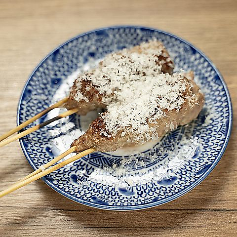 羊と豚の合挽きミンチで作った自家製の肉々しい食感のつくね。画像は2本分です。
