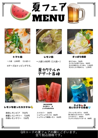 | サワー | レモン/ライム/巨峰/カルピス/青リンゴ/巨峰カルピス/青リンゴカルピス |