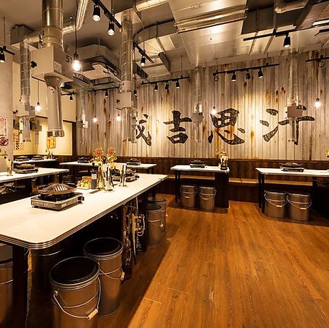 屋台を思わせる灯りのもと、臨場感溢れるカウンター席で自慢のお肉とお酒をお楽しみ下さいませ♪カウンターキッチンのライブ感がお料理をさらに美味しく引き立てます!少人数様でのご利用大歓迎!ちょい飲みやデートに♪