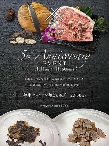 11/11~11/30限定で、和牛サーロイン焼きしゃぶを注文してくださったお客様にトリュフを無料でお付けします
