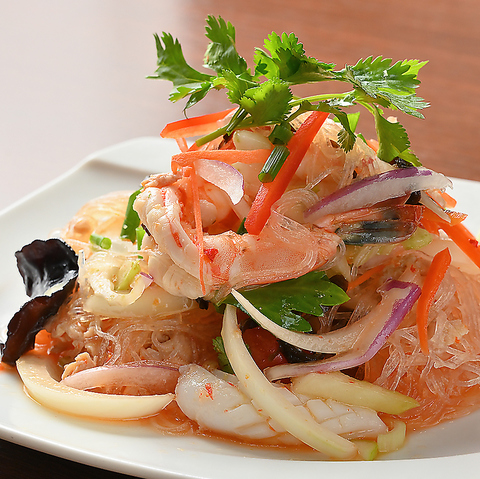 エビやイカ、鶏ひき肉の酸味がある春雨サラダ
