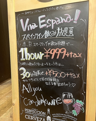 12/10~スペインワイン飲み放題!お得な価格で豊富な種類が楽しめる!