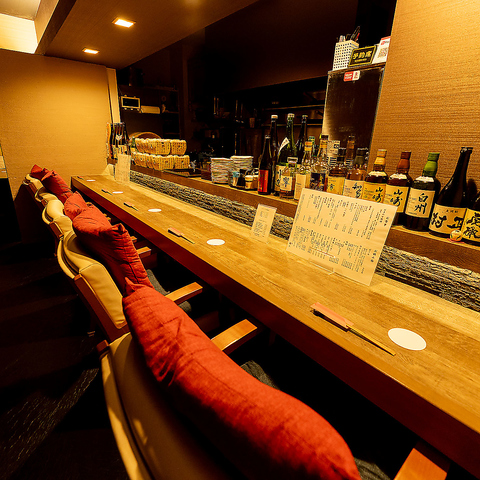 お仕事帰りにも立ち寄りやすい当店では、お料理とお酒の余韻に浸る贅沢な時間をお届けいたします。目の前で繰り広げられるプロの手さばきや掛け合いが楽しめる人気のカウンター席は、テーブル越しでの会話よりも2人の距離をぐっと縮められるので、特別な夜にも最適です。
