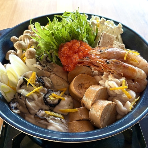 とろとろの白子や、あん肝、相生の牡蠣を使用した海鮮好きにはたまらない海鮮鍋!柚の香りも絶妙にマッチした、濃厚だけどあっさいりの味わい。寒い冬にぜひ!