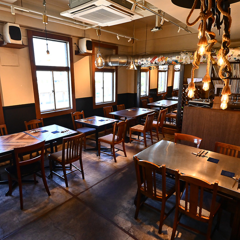 お洒落な店内の中にあるテーブル席。こちらは近くにレコード機(実際に音楽が流れています♪)があったり、お洒落な小物で装飾があったり、フォトジェニックな空間。