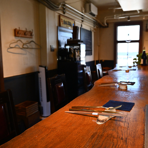 お一人様やデートなどに人気なカウンター席。お料理やワインのご説明をより丁寧にできるのも魅力のひとつ。女性二人組にも人気です。