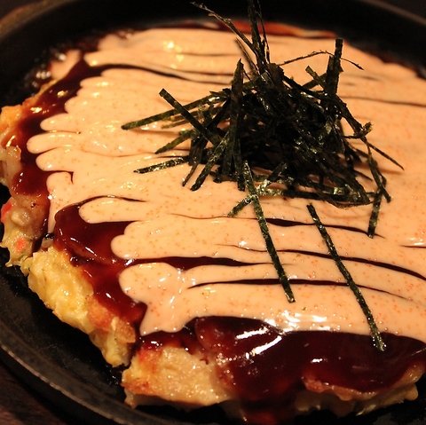 全店人気No.1の王道お好み焼き!名物「ぶた玉」は、なんと豚肉をたっぷり100g使用。ジューシーな豚肉の旨みと、ふっくらした生地の食感がたまりません。熱々の鉄板の上でソースがジュワッと音を立てる出来立てのぶた玉は、まさに至高の逸品!迷ったらまずこれをご注文ください♪