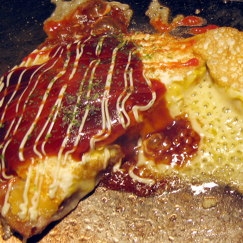 創業1972年から愛され続ける【元祖とん平焼き】は、古くから守り継がれてきた伝統の味。一方【名物とん平焼き】は、特製生地にキャベツと豚を包み、半熟卵でふわりと仕上げた当店自慢の逸品!濃厚ソースとマヨネーズが絡むふわとろ食感は必食です。食べ比べもオススメ!