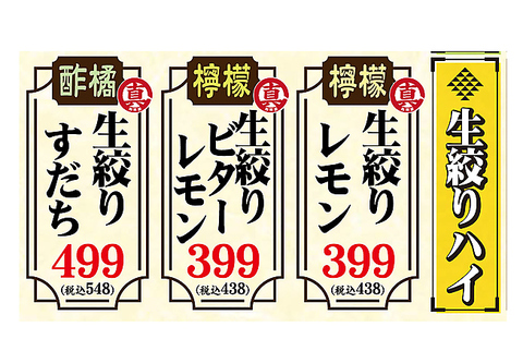 | 生絞りハイ | 生絞りレモンハイ生絞りビターレモンハイ生絞りすだちハイ |