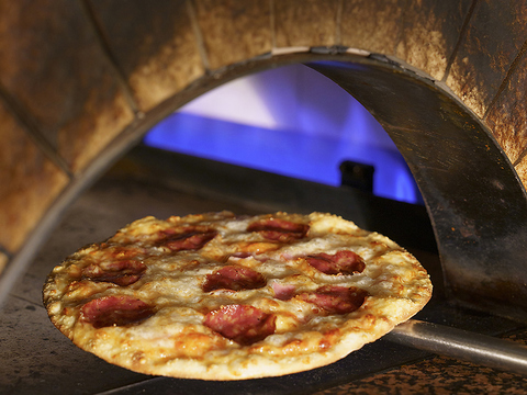 当店の窯焼きピッツァは、特製の生地にビールとビール酵母を使用し、外はパリッと、中はモチモチの食感に仕上げています。マルゲリータやカルボナーラ、アラビアータなど多彩なメニューをご用意。チーズ増量は1.5倍で350円(税込)とお得。直径20cmと30cmからお選びいただけます。ぜひご賞味ください!