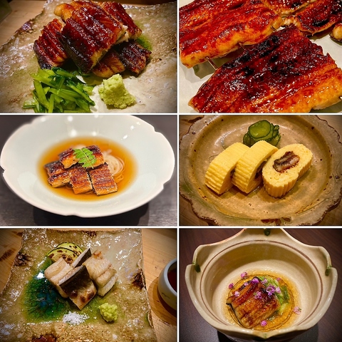鰻ざく、鰻巻き、名物鰻素麺、白焼き、土鍋の炊き立て御飯に鰻かば焼きと、鰻三昧のコースです♪