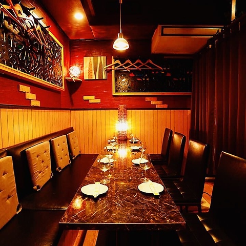 少し照明を落とした落ち着いた空間で、ゆったりとお食事とお酒を楽しめる居心地の良さが魅力。誕生日や記念日のサプライズ演出も承っておりますので、大切なひとときにぜひご利用ください。デートや女子会、会社帰りの飲み会にも最適で、幅広いシーンにご利用いただけます。全席個室で本格シュラスコと肉バル料理!食べ飲み放題3500円
