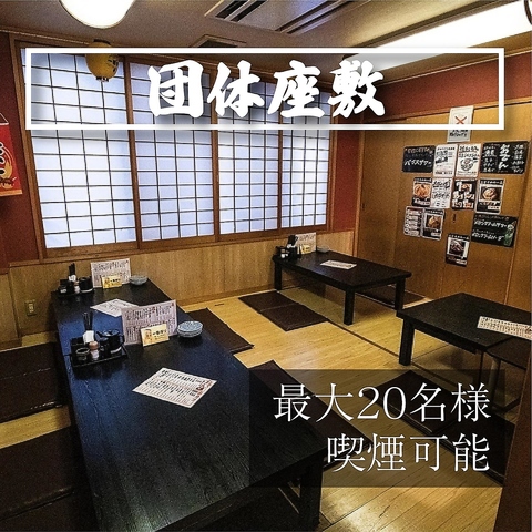 【団体席(貸切も可):最大40名様迄】当店は団体様のご予約大歓迎♪20名様まではお座敷でご用意♪店内貸切も可能です!お気軽にお問い合わせください◎ネット予約でポイントがもらえて更にお得に♪