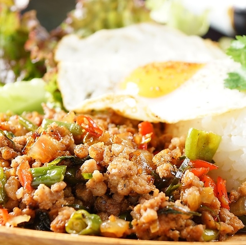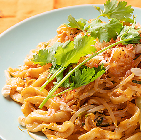 さくさくと歯触りのよい海老煎や自家製の手打ち麺でツルツルもちもちとした食感のパッタイ(タイ風ピり辛焼きそば)に、目玉焼きをトッピングしたバジル香るガパオライス、鉄板で焼き上げるパリパリの自家製餃子など、お酒と相性抜群の逸品をぜひお楽しみください!