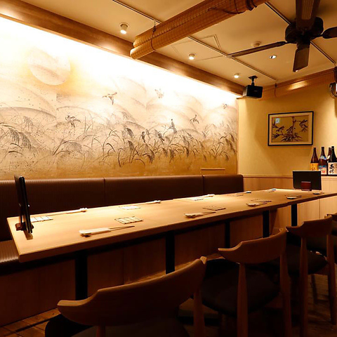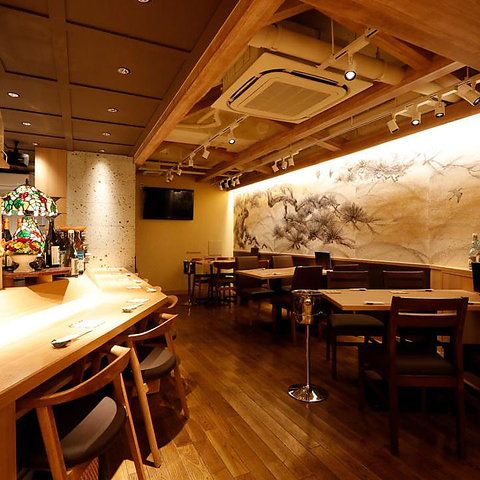 控えめな照明の落ち着いた店内で、お料理とお酒をごゆっくりとお楽しみください。