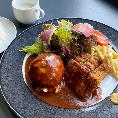 BOOCHiCで人気のビーフカツレツと手ごねチーズハンバーグを両方食べたいという方にぴったりなちょっと贅沢な一皿です※2名様以上の偶数でオーダーをお願いしております