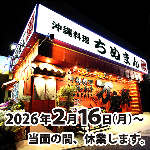 2026年2月16日(月)~店舗営業実績改善に向けての総メンテナンスのため当面の間、休業します。2月15日(日)までは、通常通りの営業となります。2月16日(月)以降のご予約は、姉妹店「ちぬまん別邸」へのご案内となりますので、ご了承ください。
