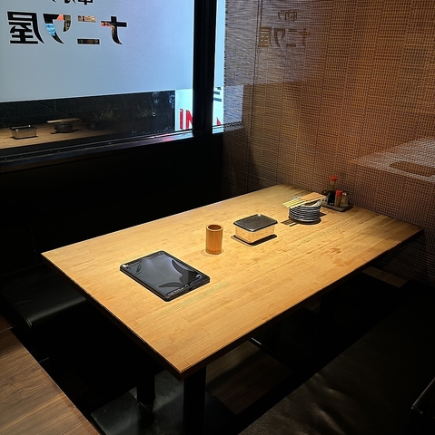 テーブル席もしっかり仕切りを装備♪ 広々としたテーブル席でもお食事をお楽しみいただけます!席を繋げれば最大8名席にも出来ます☆お気軽にご相談ください!
