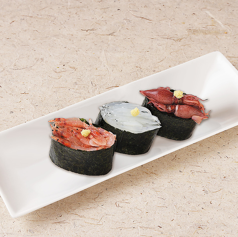旬の新鮮な魚介を贅沢にお召し上がりいただける握りを豊富にご用意しております!鮪の美味しいがギュッと詰まった『まぐろ3貫にぎり』を始め、サーモンや光物、貝など、様々な年代のお客様でも楽しんでいただける江戸前寿司を是非ご賞味ください。