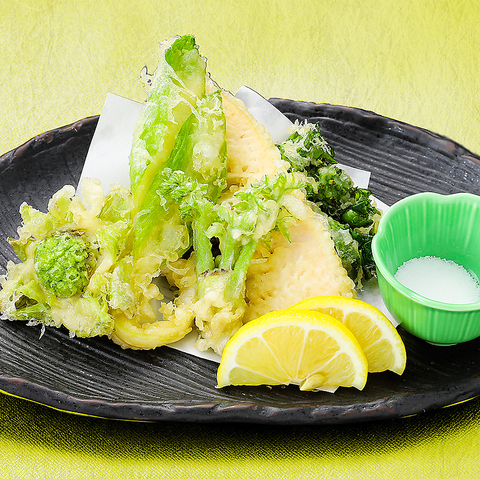 揚げ物やうどん、サラダなど、一品料理も豊富にご用意しております。定番の『海鮮ばくだん』は、様々な食材の味が合わさったやみつきになる逸品です。お酒が進む『げその唐揚げ』やコシのある『たぬきうどん』など、ご利用シーンに合わせてお召し上がりください。