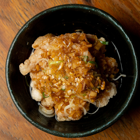 創業時から何度も試作を重ね、粉の配分まで計算し尽くされた当店でしか味わえない傑作。丁寧な手仕込みによる肉汁溢れる唐揚げは、塩・にんにく生姜・白だしのベースをご用意。さらに5種類の味変(塩、タルタル、おろし醤油、油淋鶏、激辛フェニックス味)で楽しさ倍増!何度食べても飽きない極上のサクッと感を。