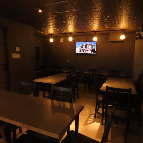 広々とした空間は大型モニター配置、マイク等も完備しており大人数の飲み会等にも最適です。