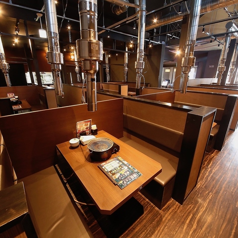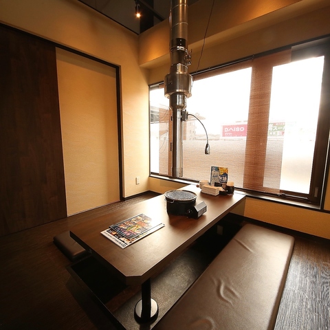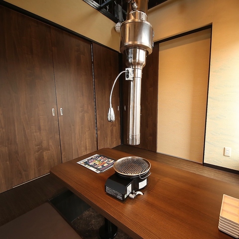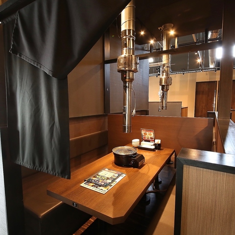 隣りを気にせずに食事を愉しめる半個室。ゆったり足を下せて居心地も抜群★ご家族やサークル帰りなど、みんなで本格炭火を囲んで焼肉をお楽しみください