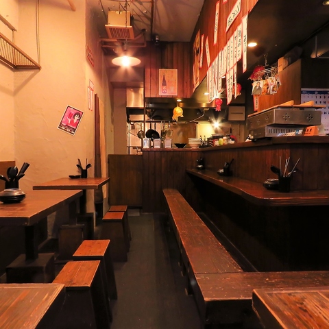店内は明るい雰囲気でついつい立ち寄りたくなるような居心地の良い空間。カウンター席でお仕事帰りのサク飲みや〆のらーめん利用◎、テーブル席で気の合う仲間とワイワイ飲み明かすのも◎、シーン問わず使い勝手抜群☆飲み放題付きコースも充実しておりますのでご宴会にも最適!貸切利用は12名様からOK!団体様のお集まりも【鷹楽】におまかせ!