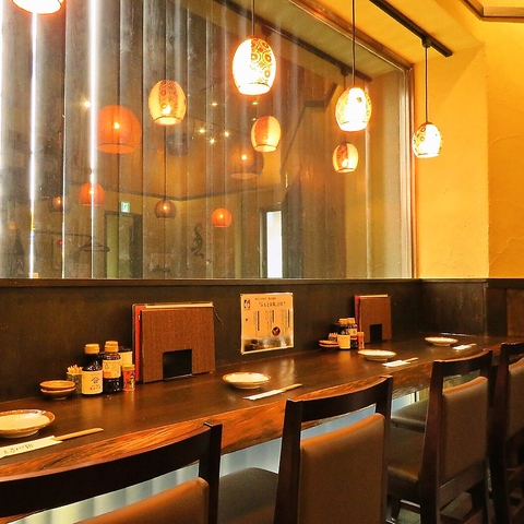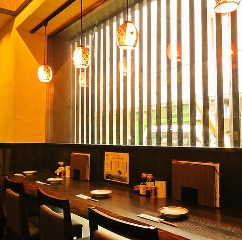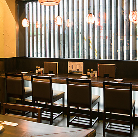 外光が優しく差し込む窓際のカウンター席は、落ち着いた雰囲気の中でゆったりと過ごせる安らぎの空間。お一人様でも気軽に利用でき、仕事終わりの一杯や軽く飲みたい時にもぴったりです。程よい距離感と温かな灯りが心地よく、料理や地酒をじっくり味わえる人気の席です。