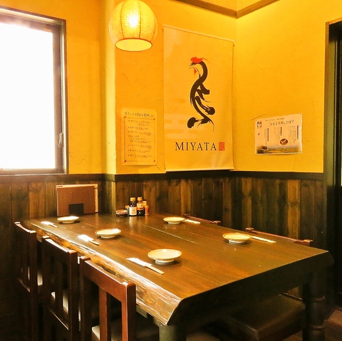 木の温もりを感じるテーブル席は、落ち着いた雰囲気の中でゆっくり食事や会話を楽しみたい方に最適。程よい距離感で座れるため、友人同士の飲み会やお仕事帰りの一杯にも使いやすい空間です。温かな照明に包まれ、みや田自慢の料理と地酒・焼酎をゆったり堪能できる人気の席です。
