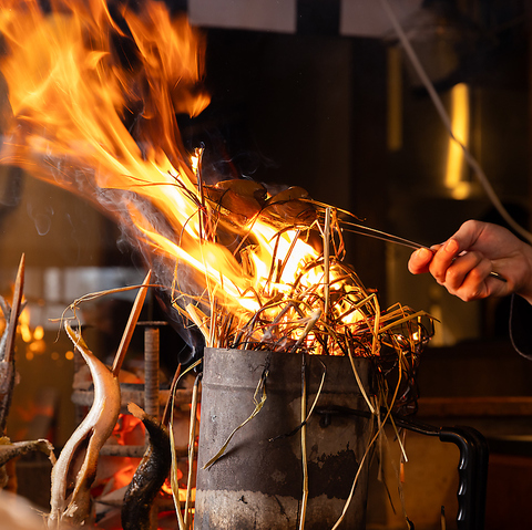その日の一番鮮度の良い鰹を仕入れ、藁で一気に炎を上げ瞬間燻製に仕上げます。ポン酢かお塩で召し上がっていただきます。