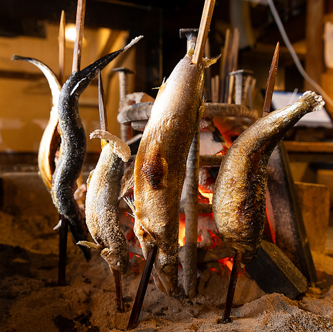 極上の焼きに合った魚を串に刺して焼き上げます。