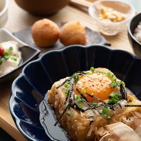 お豆腐屋さんなのに…圧倒的な人気メニュー!外はカリッ、中はジューシーに揚げた鶏の唐揚げに、自家製豆富で仕立てた“特製とうふタルタル”をたっぷり。まろやかで軽やかなタルタルが鶏の旨味を引き立て、一度食べたらリピーター続出の大人気メニューです。豆富屋のこだわりが生む、ここにしかない贅沢な唐揚げ。