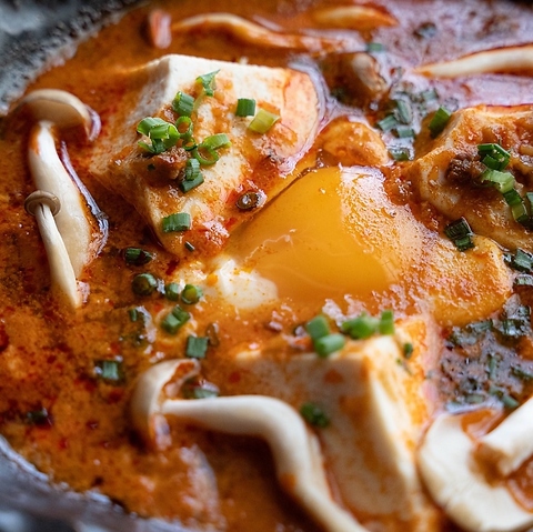 増田豆富店が60年の技と知恵を結集し、スンドゥブ専用に仕立てた“特製豆富”。岡山県産大豆「トヨシロメ」に水分量・凝固温度・にがり配合を微調整し、高温の旨辛スープでも崩れず、噛むほどに甘みが広がる構造に仕上げています。“スンドゥブの主役”になるために生まれた豆富。その違いを、ぜひご体験ください。