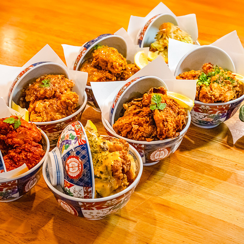 店内仕込みの自家製唐揚げです!味はニンニク醤油、塩だれ、おろしポン酢、バジルチーズの4種類からお選び頂けます。1つ1つが大きくボリューム満点の品となっております!外はカリッと中はジューシー、お酒が進むこと間違いないしです!