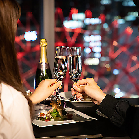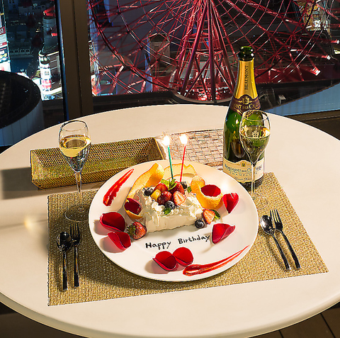 夜景が一望できるお席にご案内させていただいております。席数には限りがございますのでお早めにお問い合わせください!【Happy Birthday】や【Happy Anniversary】などの内容変更、お名前を書くことも可能ですのでお気軽にお申しつけください♪