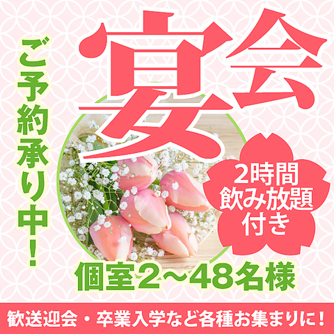 《歓送迎会・接待・各種お集りに》ご予算別にお選びいただける季節のコースは、ご宴会にぴったりな2時間飲み放題付◎時間延長も可能なので、ゆっくりとお過ごしいただけます。