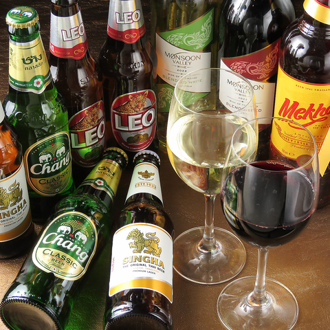 タイ産のビールやワイン、ウイスキーのメコンなどタイのお酒を豊富に取り揃えています!