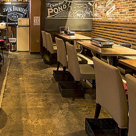 【テーブル席】木目とレンガ調の落ち着いた雰囲気の店内です。テーブル席は少人数の宴会やお友達グループでのお食事にご利用ください。上質なお肉のコースをご用意しています。+2,000円(税込)で生ビール込みの飲み放題も付けられます☆お得なクーポンもご利用ください。
