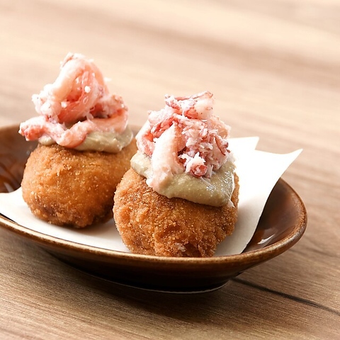 みんな必ずこの一品を食べます!刺身用のサーモンをサクサクの衣で揚げました。プチプチのイクラとタルタルソースをかけて召し上がれ。