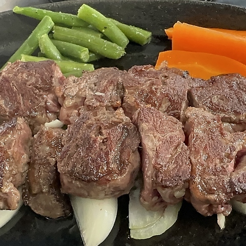 アツアツに熱した鉄板にのせてご提供!いい香りの湯気とともにお肉の焼ける音が食欲よそそります!