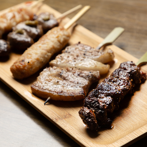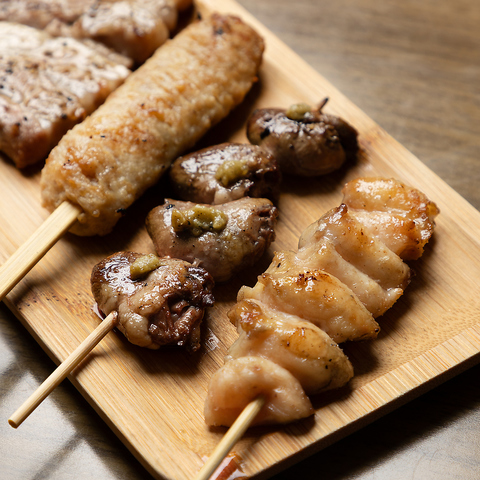 種類豊富に焼鳥と串ものをご用意!定番メニューから白レバー串や幻の豚バラ串などぜひ賞味ください!