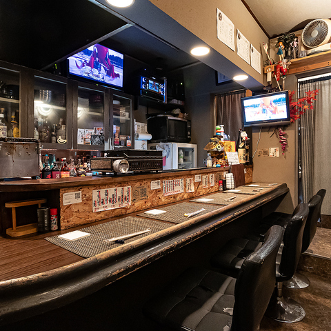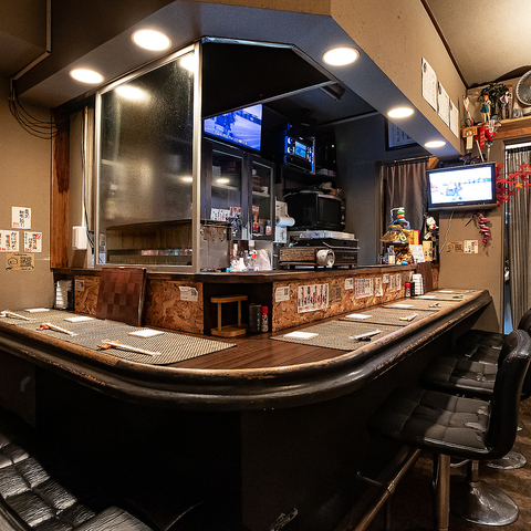 【1階席】カウンターは全8席だけの特別な空間。お客様の目の前で調理する特等席です。串やお肉料理をカウンターでどうぞおたのしみくださ!お好みの焼き加減がございましたらお気軽にお申し付けください。