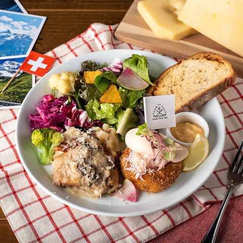 【12/1 START!】おいしいものをちょっとずつ、この一皿でメインのお料理から前菜、スープ、ケーキまで楽しめる大人のお子様ランチ。兵庫五国の恵みと各国のお料理を融合させた、「ひょうご五国と旅する大人のお子様ランチ」第四弾は但馬×スイス! 兵庫県香美町の香住ガニを使用したメインと、スイスの定番料理を楽しめる贅沢なワンプレートランチです。兵庫のおいしい食材と季節の味わいを存分にお楽しみください。