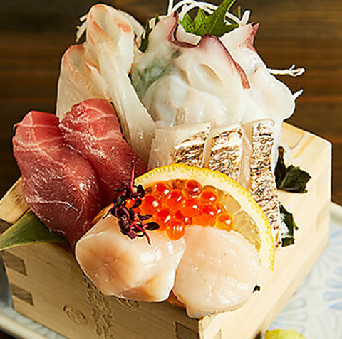 豊洲直送の新鮮な海の幸をお楽しみいただけます!日替わりの為、内容はおまかせとなりますが、毎日異なる美味しさをお届け。2切×5種で1320円(税込)、3切×5種で1980円(税込)とお得な価格でご提供。ぜひ、その日限りの新鮮な味わいをお楽しみください☆