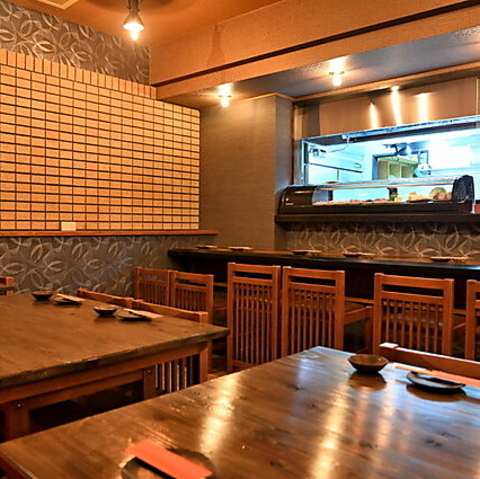 6名様が利用可能なカウンター席は、料理人の技を間近で楽しめる特別な空間です。新鮮な食材を使った料理を目の前でご覧いただきながら、シェフとの会話も楽しめます。落ち着いた雰囲気の中で、心ゆくまで美味しい料理をお楽しみください。特別なひとときを過ごすにはうってつけの席です!
