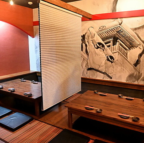 パーテーションを利用することで半個室となる掘りごたつのお座敷は、落ち着いた雰囲気でプライベート感満載の空間です。ゆったりとした座り心地で、友人や家族との特別なひとときを心ゆくまでお楽しみいただけます。美味しい料理と共に、リラックスした時間をお過ごしください。大切な集まりや宴会にもおすすめ!
