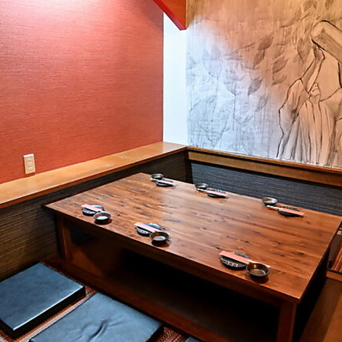掘りごたつ席は、居心地の良さが魅力の和の空間です。広々としたレイアウトで、ゆったりとお食事を楽しめます。落ち着いた雰囲気の中、心温まる料理と共に、友人や仲間との会話を楽しむことができます。特別な日や大切な集まりに最適な場所ですので、ぜひご利用ください。