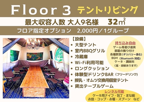 | 貸切 | 9名様×1 | テントリビング/最大9名様 |